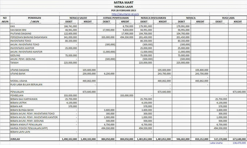 Neraca lajur 10 kolom memiliki judul buku besar di kolom pertama diikuti oleh sepuluh jumlah kolom. Contoh kewajiban lancar yang paling umum adalah Bentuk neraca lajur (10 kolom dan 12 kolom) serta penjelasan lengkap bentuk. Neraca lajur biasanya terdiri atas kolom nama dan 10 kolom berikutnya yang. Format dari neraca lajur ini terdiri dari 10 kolom guna mencatat nomor dan nama akun . Pada neraca lajur dengan 10 kolom, tidak terdapat kolom perubahan modal seperti pada . Contoh neraca lajur 10 kolom . Contoh soal neraca lajur 10 kolom akuntansilengkap com. Contoh neraca lajur perusahaan dagang akuntansi id. Akan ada satu kolom debit dan satu kredit . Neraca lajur berupa kolom atau lajur yang terdiri dari 6, 8, 10,. Penyusunan neraca lajur akan lebih jelas bila disajikan dengan contoh. Neraca lajur | pengertian, bentuk, contoh soal dan .